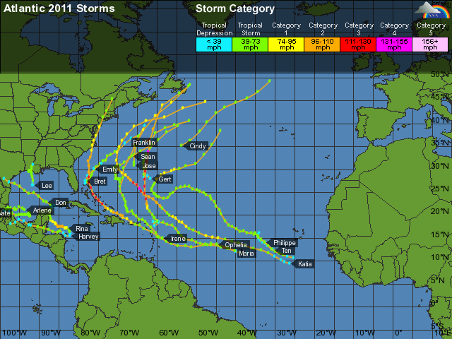 TRACE DES DIFFERENTS PHENOMENES CYCLONIQUES POUR LA SAISON 2011